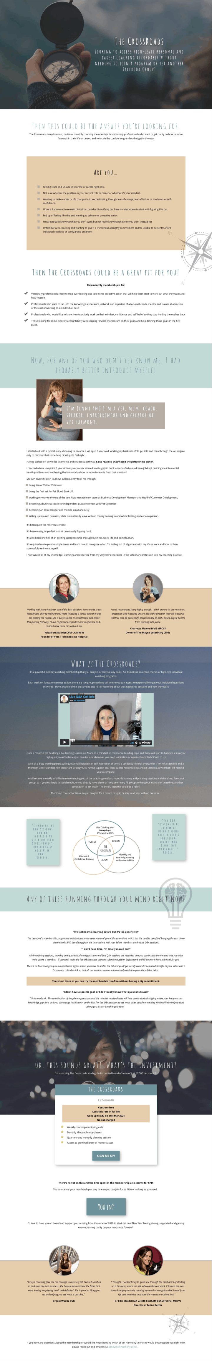 Jenny offers high-level personal and career coaching for veterinary professionals. The designer took her current brand colors, images she liked, and used it to design this new sales page. I created the page directly on her website with Divi.