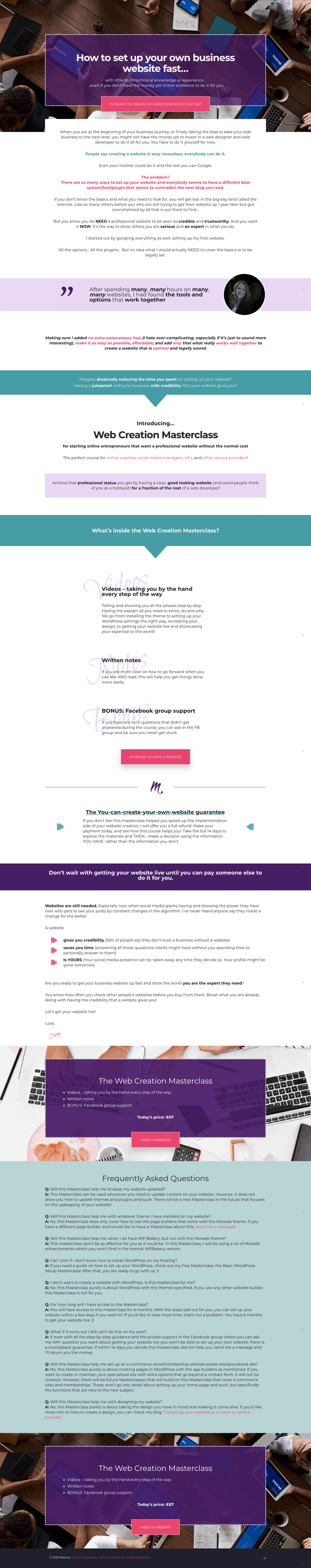 For my Masterclass I created a sales page in the old style of Melanze. Yes, I love colors ;). Designed by my partner, build by me in Movedo, but to be recreated in Beaver Builder.